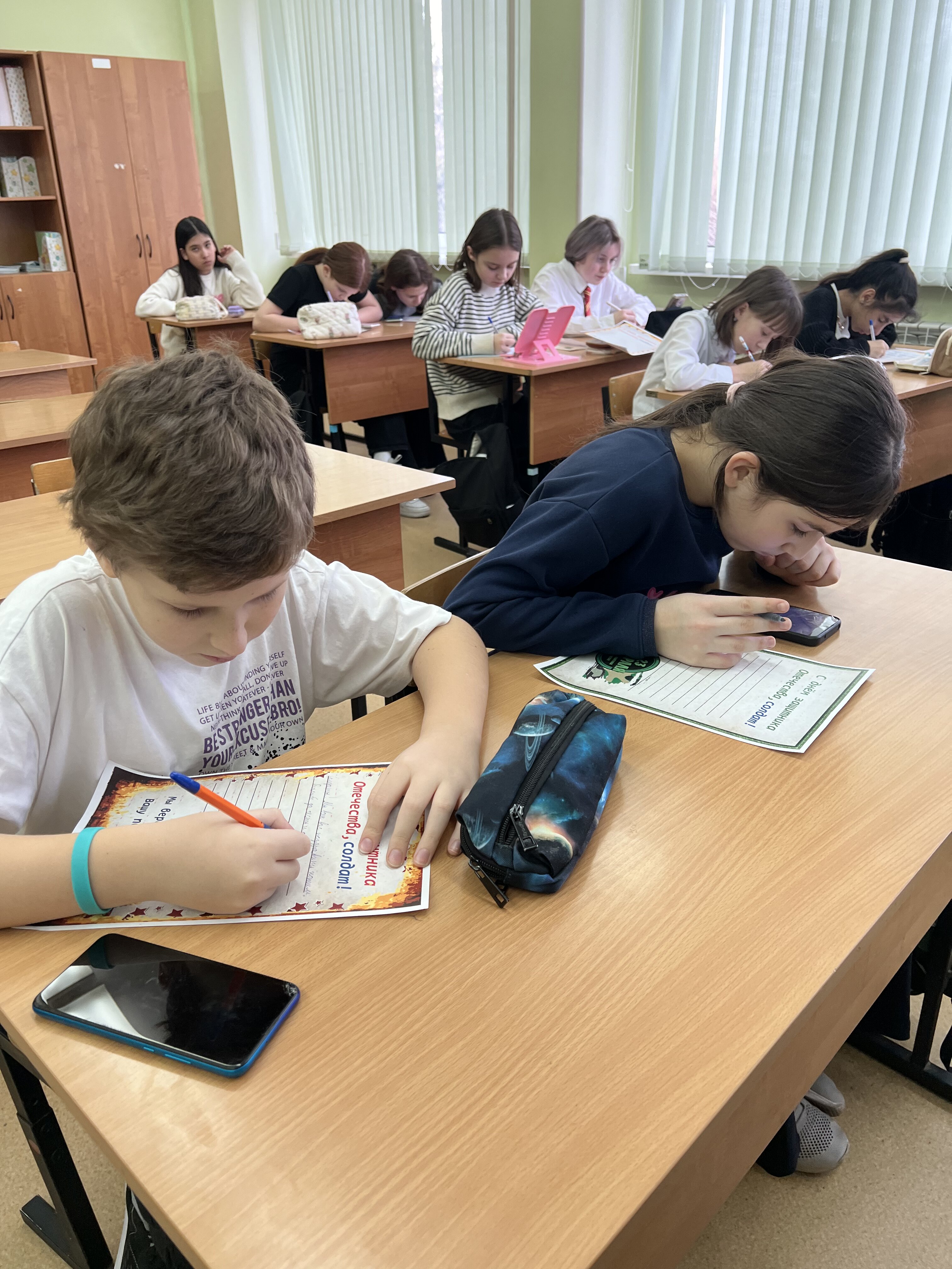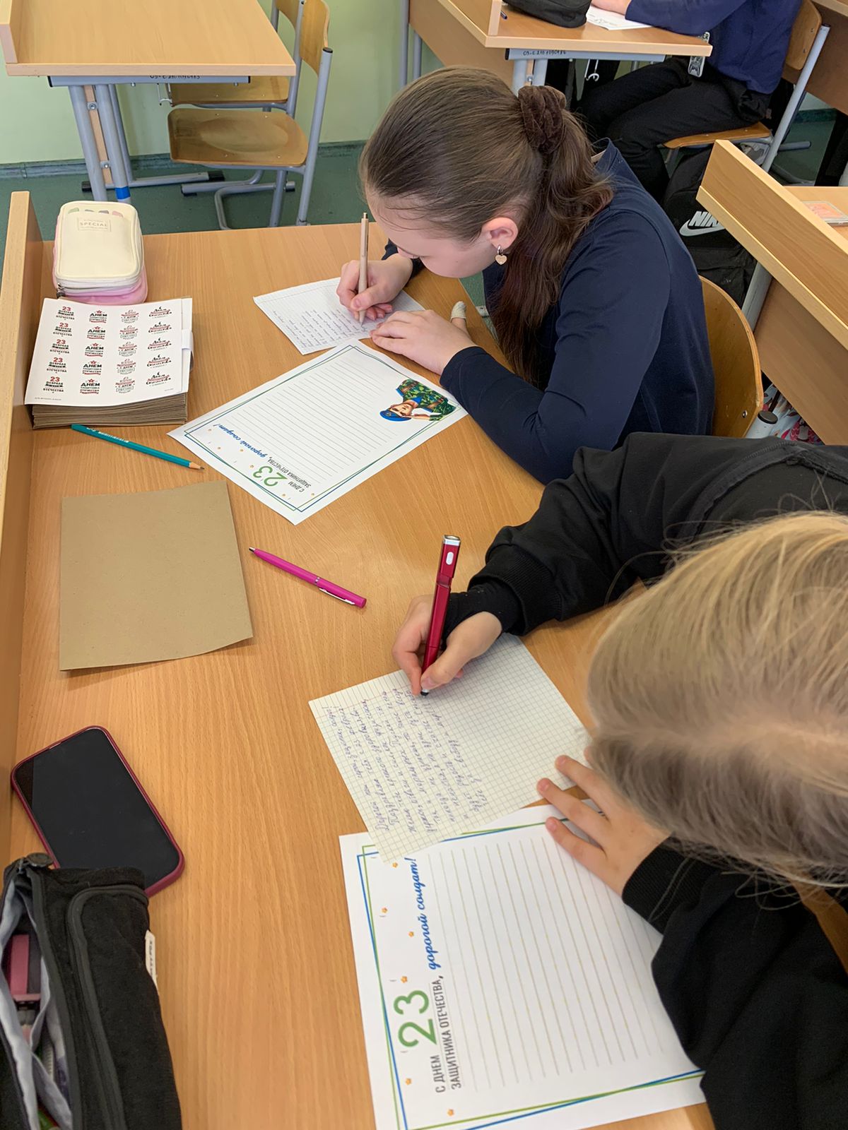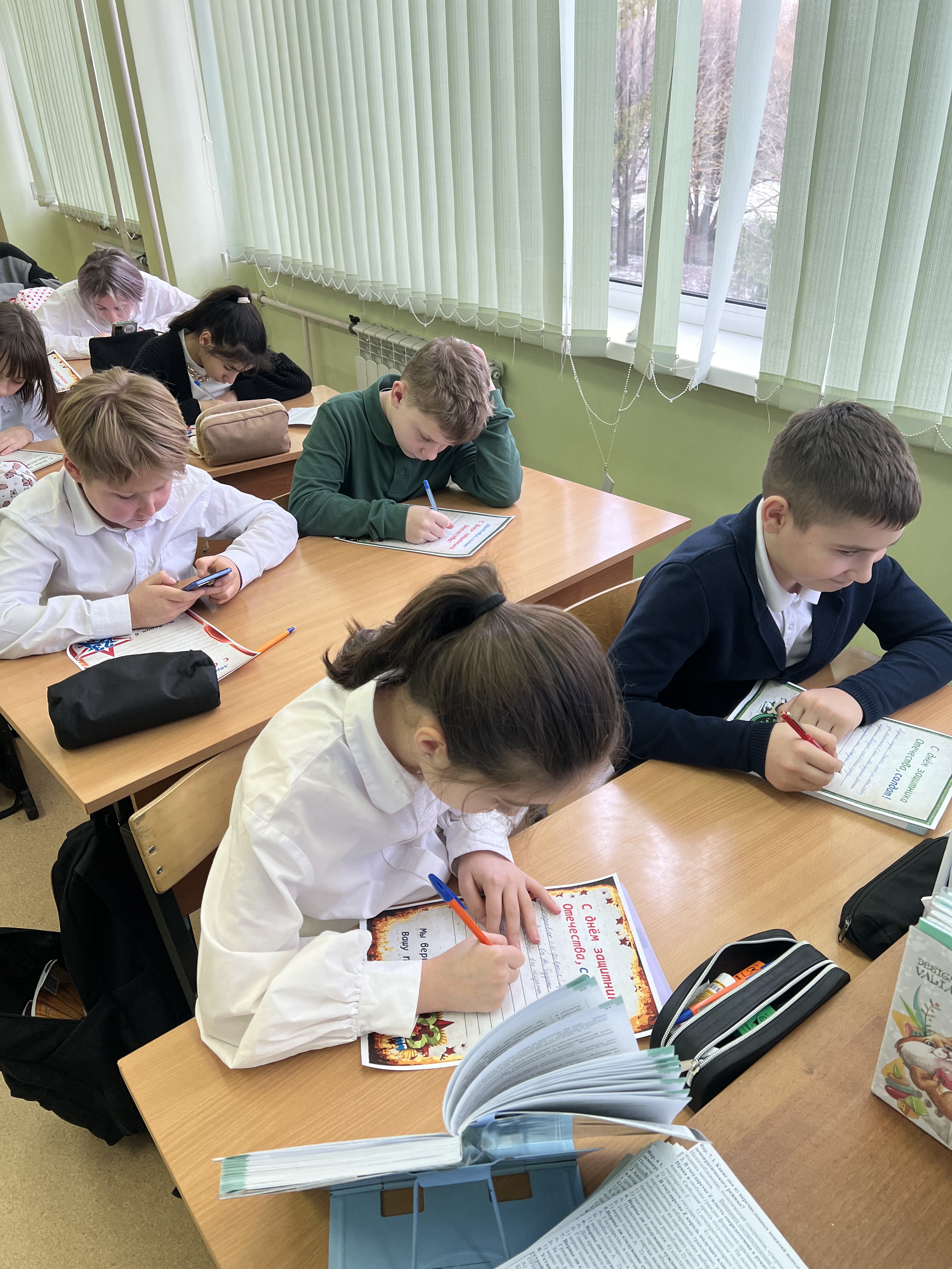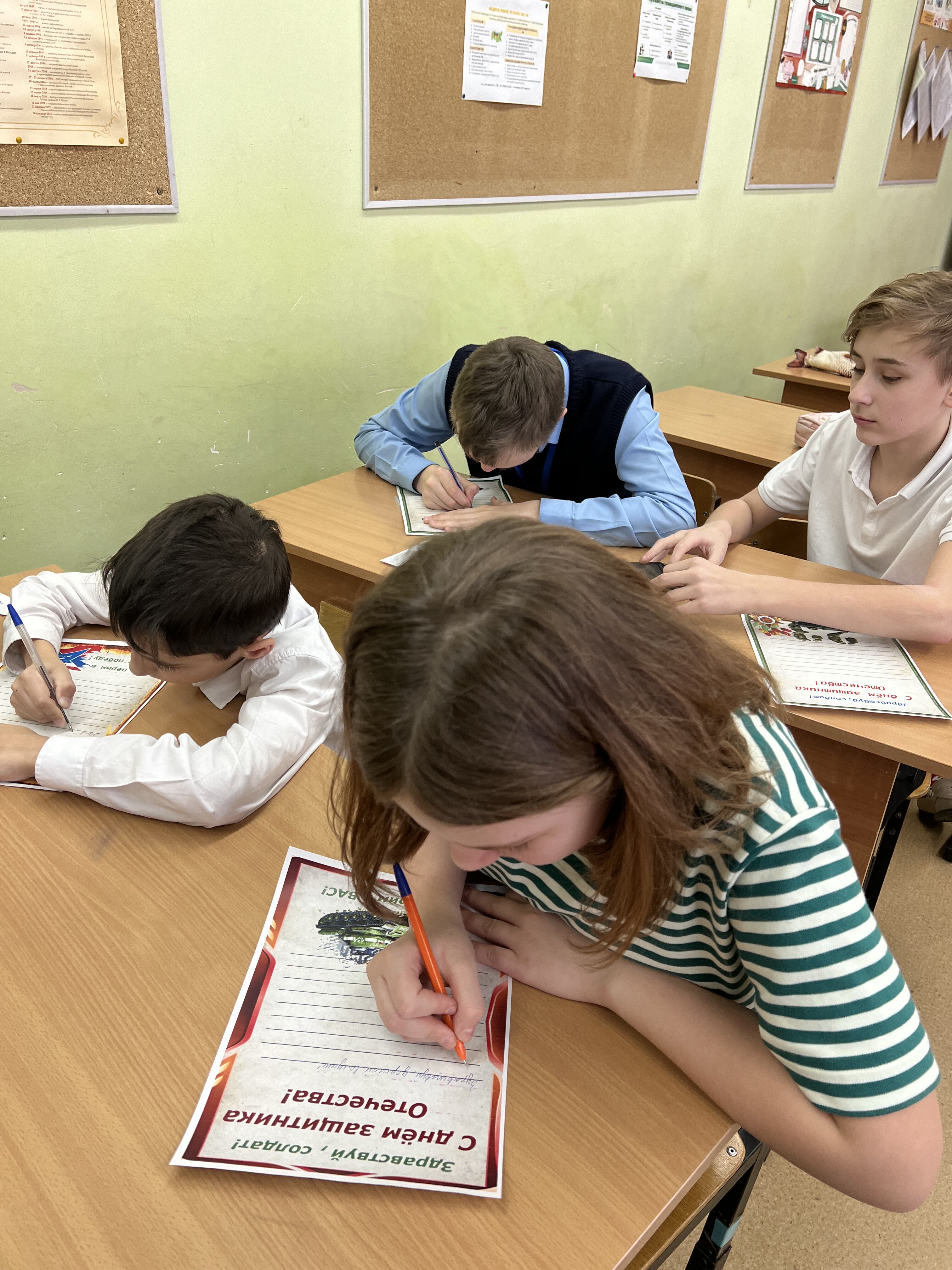 В преддверии Дня защитника Отечества учащиеся 5-К и 5-И классов школьного отделения №3 приняли участие во Всероссийской акции «Письмо солдату». С особым трепетом и вниманием ребята подошли к написанию писем, стараясь передать в словах свою поддержку, благодарность и уважение к тем, кто стоит на страже нашей страны. В каждом письме – искренние пожелания здоровья, сил и скорейшего возвращения домой. Мы верим, что эти письма станут для солдат настоящим подарком – тёплой весточкой с малой Родины, напоминанием о том, что их подвиг не остаётся незамеченным, а их смелость и мужество вызывают глубокую признательность. |