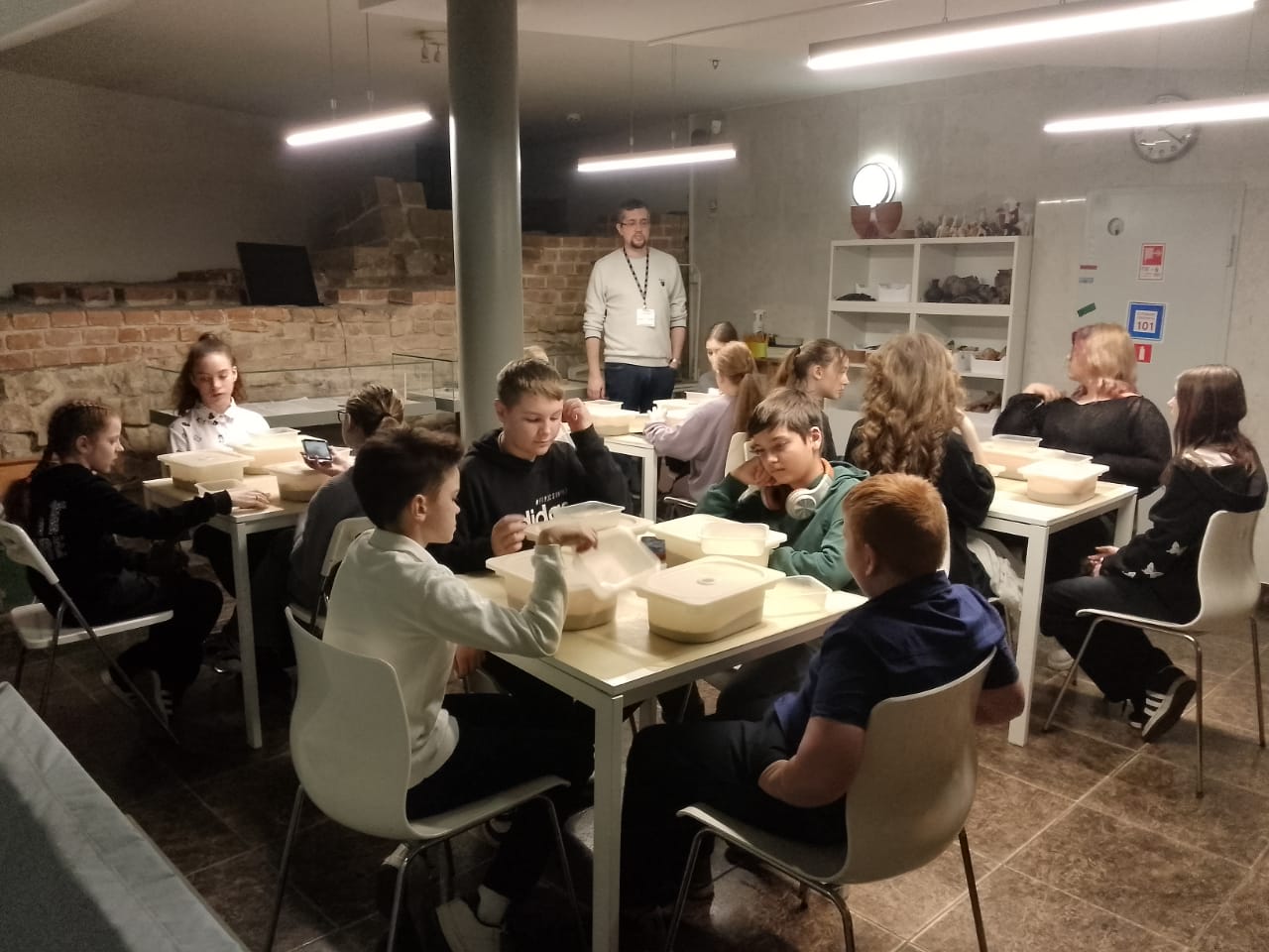 11 марта 2025 года учащиеся 5 «В» класса посетили Музей археологии Москвы и приняли участие в интерактивной экскурсии «Что изучает археология?». Это увлекательное занятие позволило школьникам глубже погрузиться в историю и познакомиться с основами археологических исследований. Ребята узнали, что такое хронология, периодизация и как проводятся настоящие археологические раскопки. На примере изучения Манежной площади они познакомились с историей Воскресенского моста через реку Неглинную и узнали, какие находки помогают историкам воссоздавать прошлое. Особенно запомнилась интерактивная часть экскурсии, где каждый участник смог почувствовать себя настоящим археологом, приняв участие в импровизированных «раскопках». В завершение занятия ребята обсудили найденные предметы и их значение в изучении быта людей прошлого. Кроме того, во время визита в музей учащиеся также приняли участие в олимпиаде «Музеи. Парки. Усадьбы», продемонстрировав свои знания об истории Москвы и её культурном наследии. Посещение музея стало для ребят настоящим открытием и дало возможность не только узнать много нового, но и применить полученные знания на практике! |